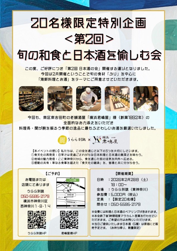 老舗割烹「横浜君嶋屋」様の料理長が腕を振るう特別コースと、